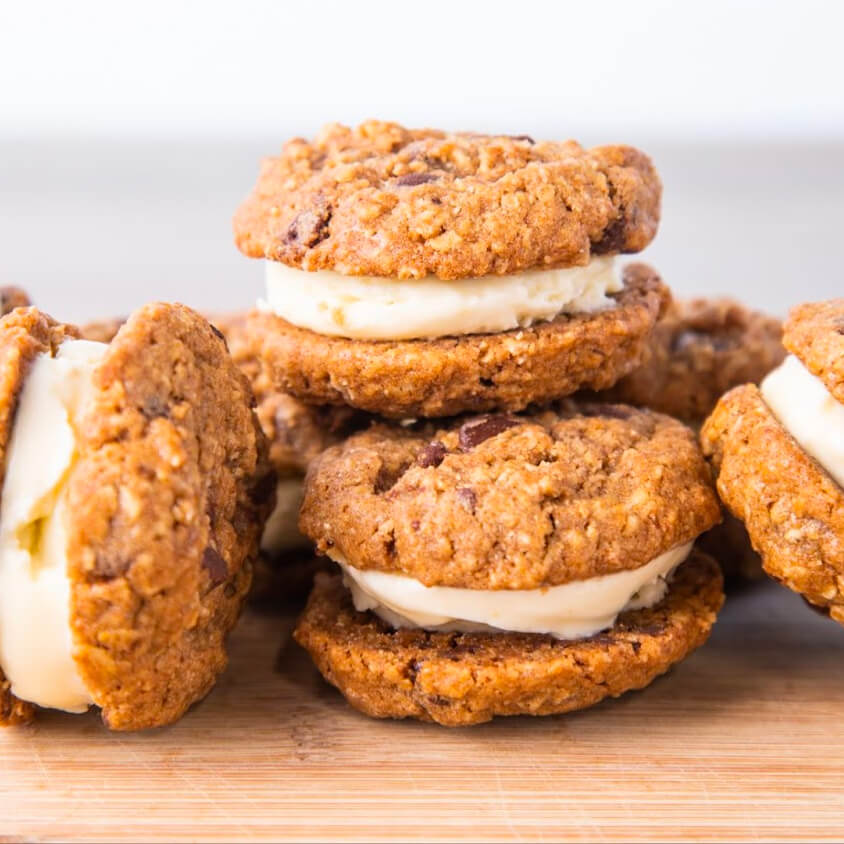 These ice cream sandwiches won the Best New Frozen Dessert in the country! We make them smaller (4-bite), reducing waste (and guilt). Enjoy!
